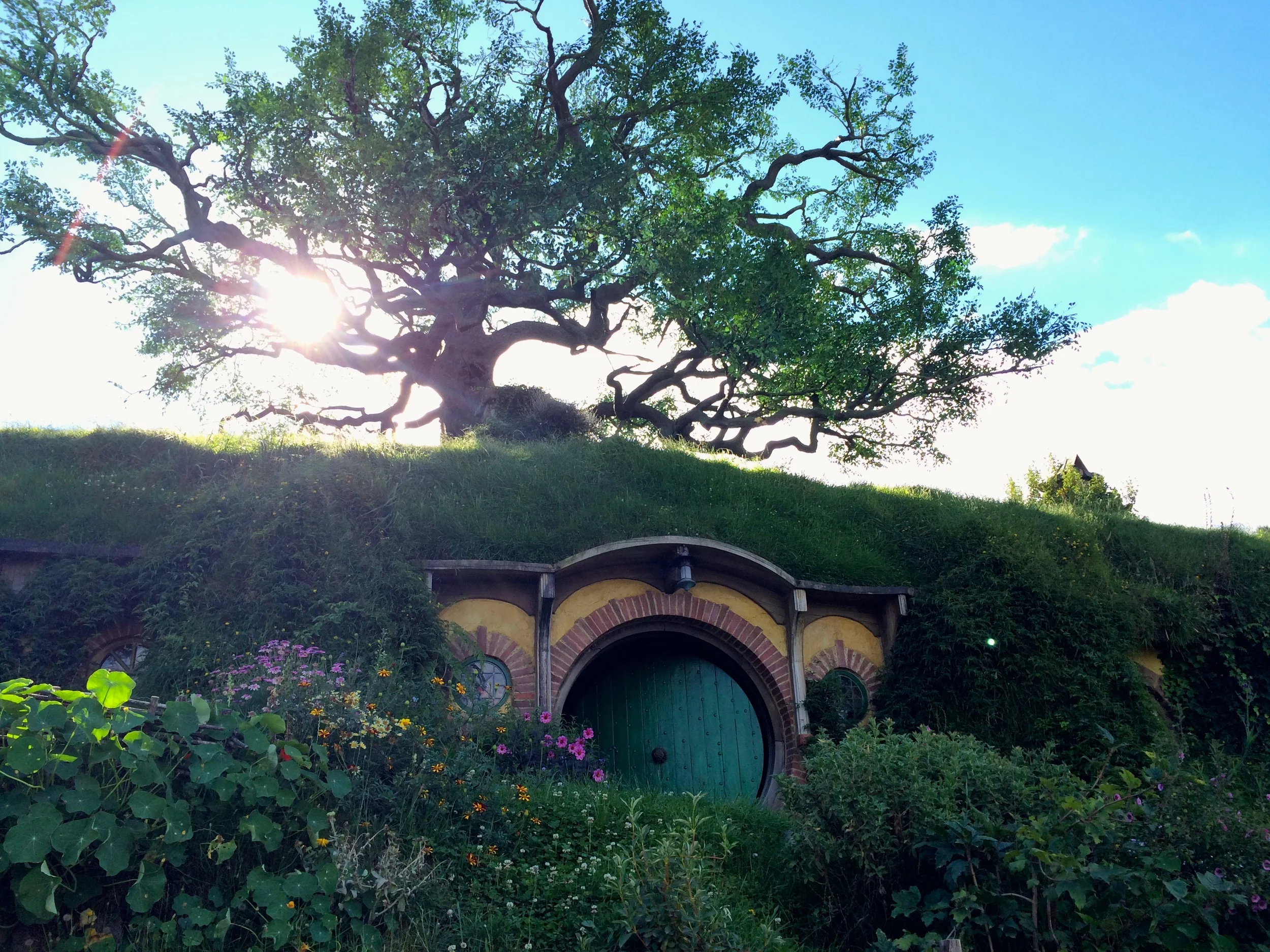With the stolen car replaced (unfortunately not at the expense of the insurance company), claims filed, forensics investigations scheduled and the report underway, we headed south to a town called Matmata. This small rural town near the center of the north island is well known for horse breeding and racing and for it’s rolling green hills with ponds and big trees, making one of it’s farms an excellent location for hobbit holes and the film site for a movie you might of heard of. Danny and I toured Hobbiton, home of the Shire and were not disappointed. It was a fun walk through a magical scene straight out of the movies. Cause it was. There were over 40 hobbit holes built into the hills with winding dirt trails between them. We learned tons of interesting background on the land used for the Shire, behind the scenes details and history, and what lengths Peter Jackson would go to in order to appease his attention to the finest detail. We saw them all from Samwise the Brave’s home, to Bilbo’s dwelling place at the top of Bag End. The party tree where Bilbo disappeared after his eleventy-first birthday and the street he ran down “going on an adventure” (reenacted by us of course). At the end of our tour we stopped off at the Green Dragon pub for a few Hobbit brews. It was a fun afternoon, and we met a friend who helped take pictures of us being tourists. She also happened to have a friend selling a vehicle. Coincidence? I think not.